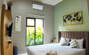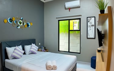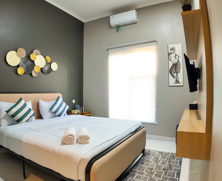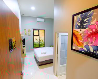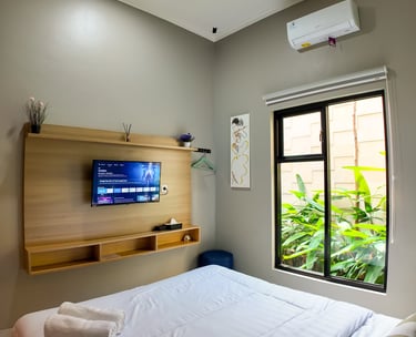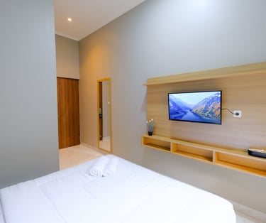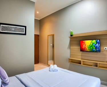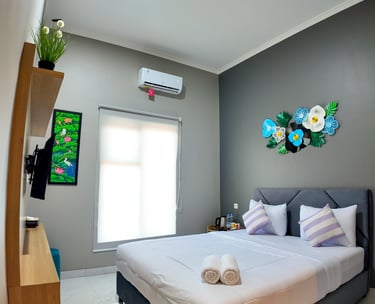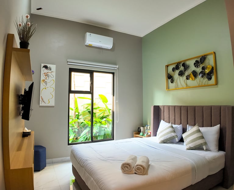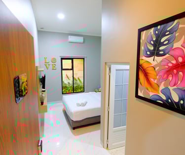 sentuhan modern dan nuansa tropis, kamar ini menghadirkan kenyamanan seperti di Seminyak. Dilengkapi balkon dan akses ke lorong estetik yang cocok untuk bersantai atau foto-foto.